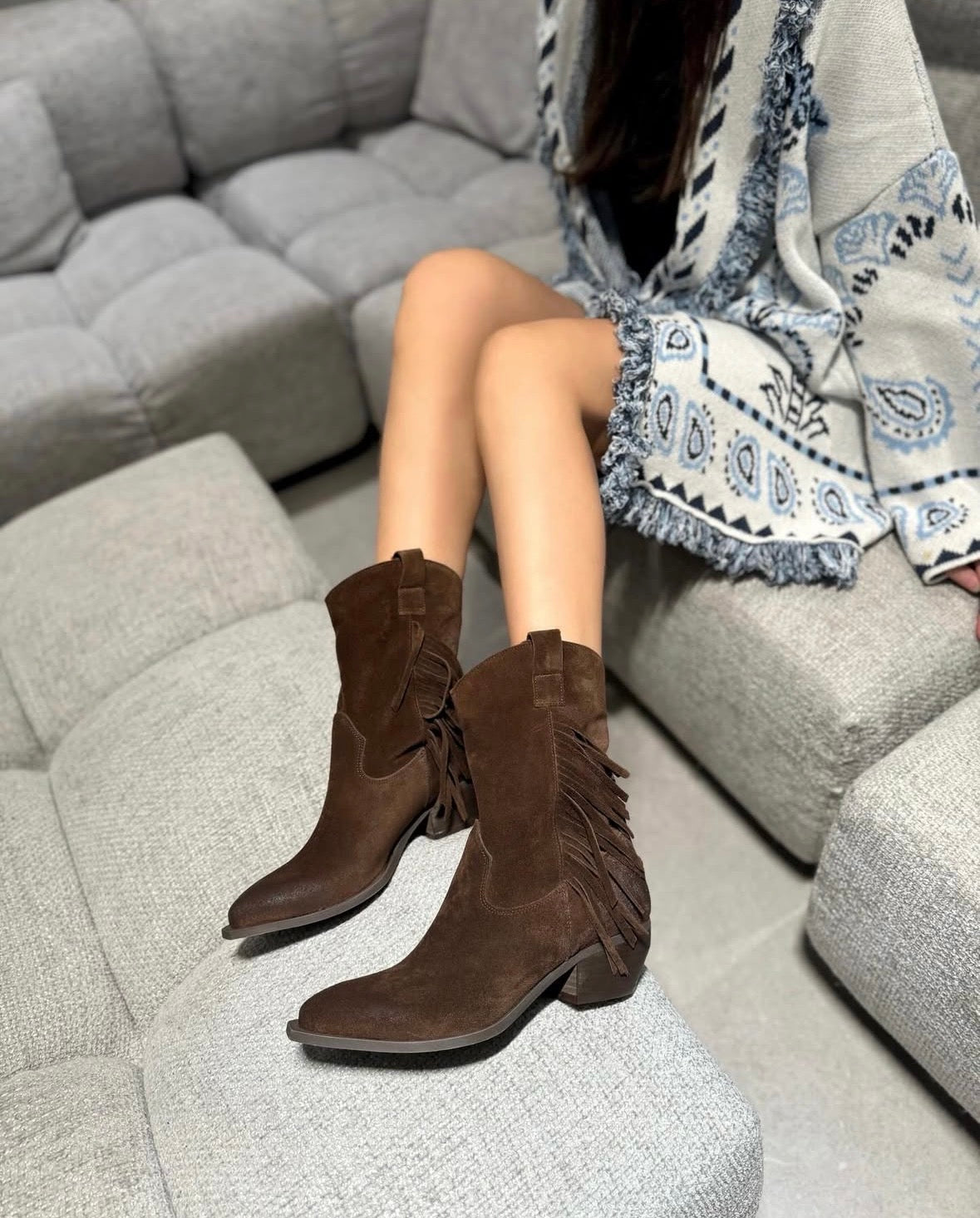 I nostri Stivaletti con Tacco (tacco 5cm, vero camoscio) rappresentano l'incontro perfetto tra stile e praticità. Ogni paio è frutto di una meticolosa attenzione ai dettagli, garantendo una combinazione ideale di moda e comfort. Questi stivaletti sono pronti a sfidare le condizioni atmosferiche avverse. Le suole antiscivolo garantiscono una camminata sicura, mentre i dettagli alla moda ti permettono di brillare in ogni occasione. La calzata è progettata per offrire il massimo comfort e una perfetta vestibilità, mentre l'altezza del tacco di aggiunge un tocco di eleganza senza compromettere la comodità.